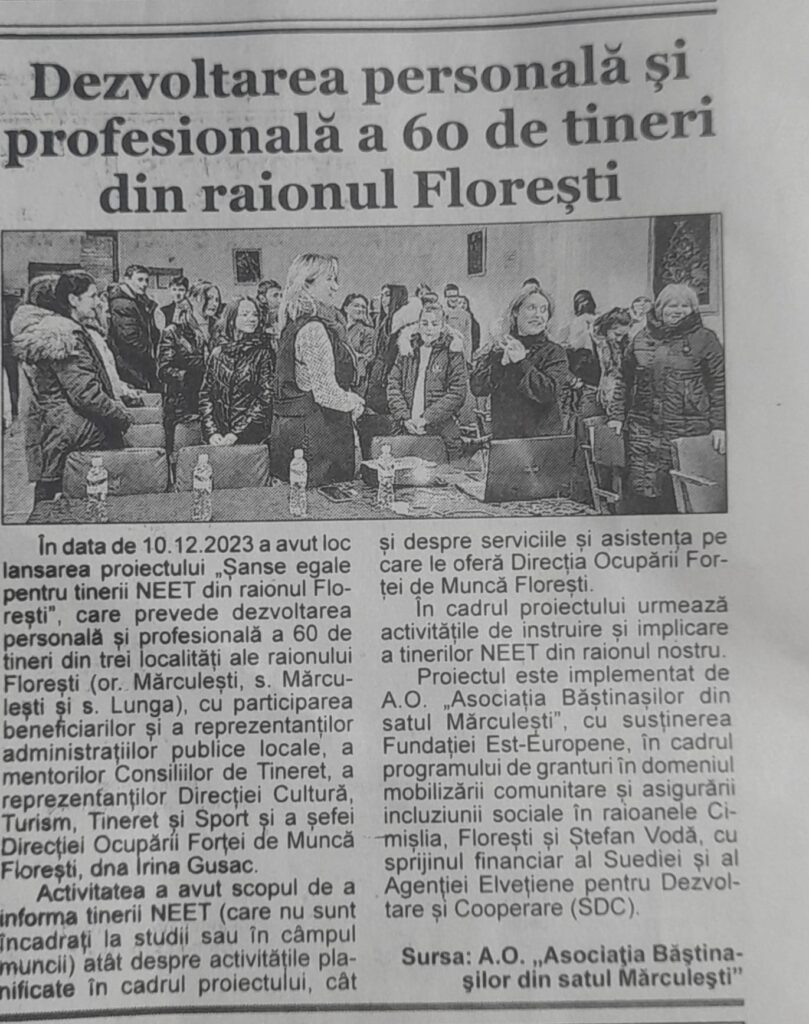 AO "Asociația Băștinașilor din satul Mărculești" – o comunitate unită pentru dezvoltare locală.
